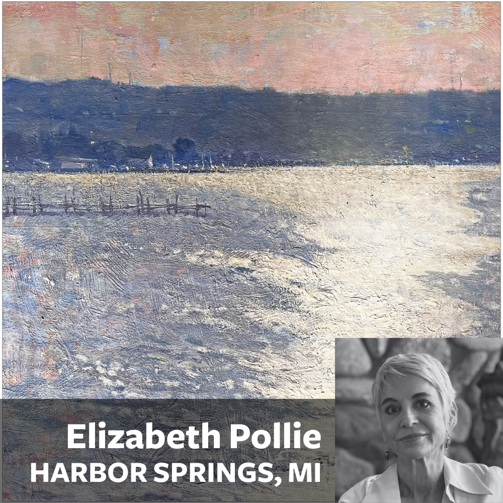 Elizabeth’s personal art history extends back decades. Art as a path, a language, and a personal frontier has been present from the time of her childhood. She earned her BFA from The College for Creative Studies, where she later taught. Pollie also worked as a freelance editorial illustrator and was nationally awarded. Later as digital images replaced those that were traditionally created, Elizabeth’s interests turned in the direction of representational painting.